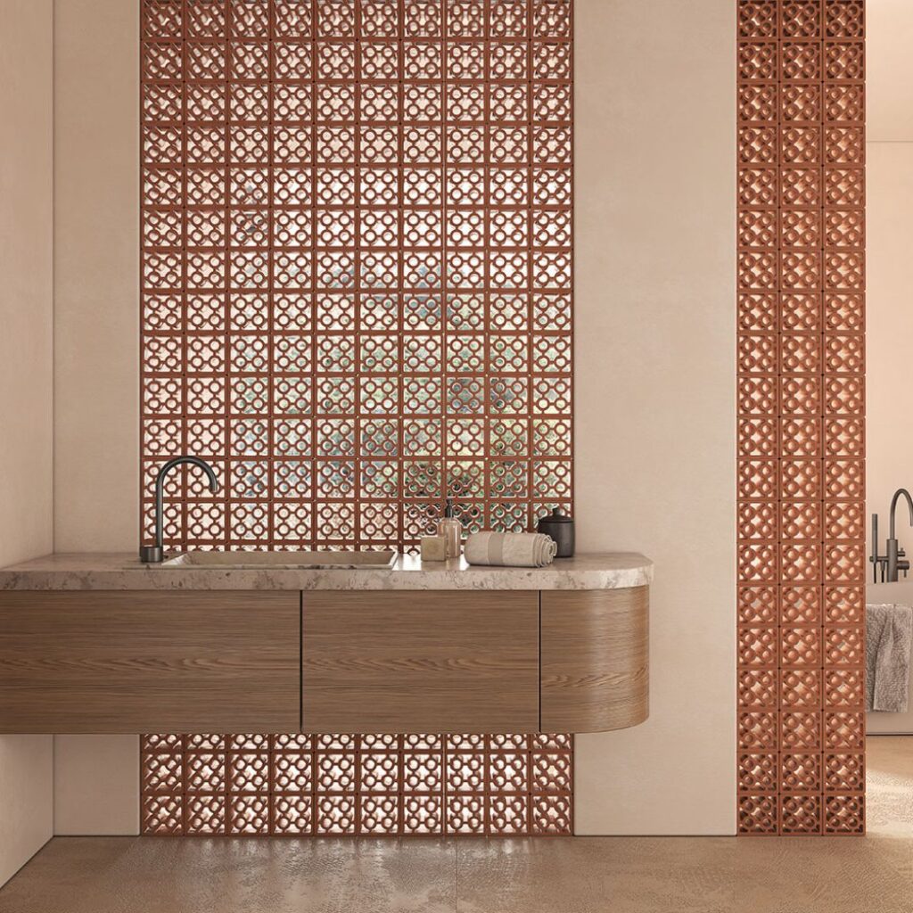 De collecties van WOW, Mutina en Terratinta tonen hoe uiteenlopende ontwerpvisies, van grafisch en modulair tot expressief en ambachtelijke dezelfde driedimensionale logica vertalen naar krachtige architecturale toepassingen. Ze maken duidelijk dat 3D-claustra niet langer als invulling worden ingezet, maar als dragers van identiteit, ritme en materialiteit.