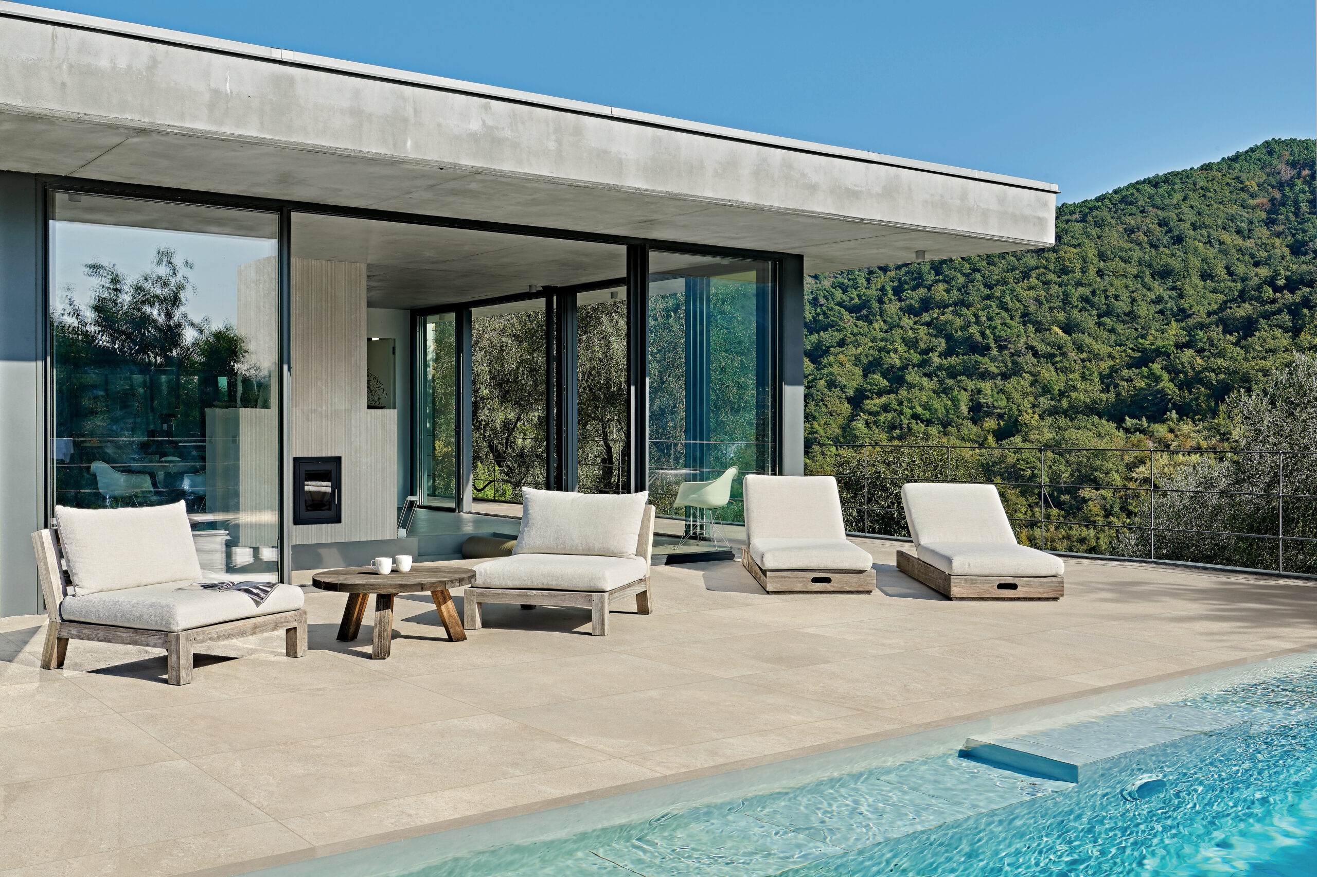 Met zijn natuurlijke steenlook, subtiele nuances en grootformaattegels vormt Caro de perfecte basis voor moderne interieurs en buitenprojecten.
